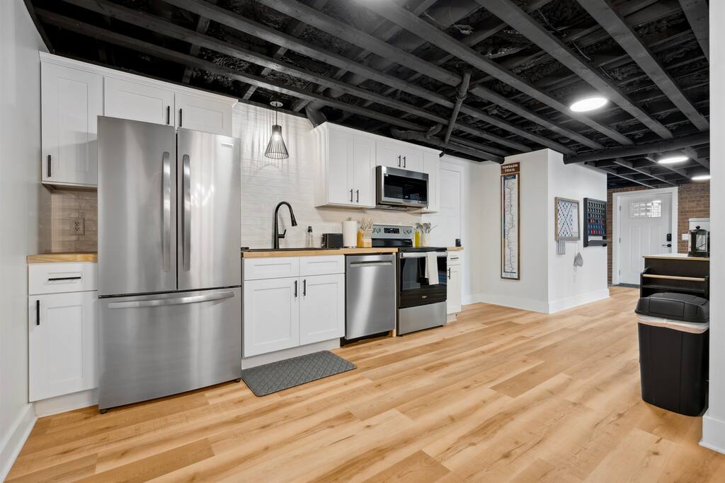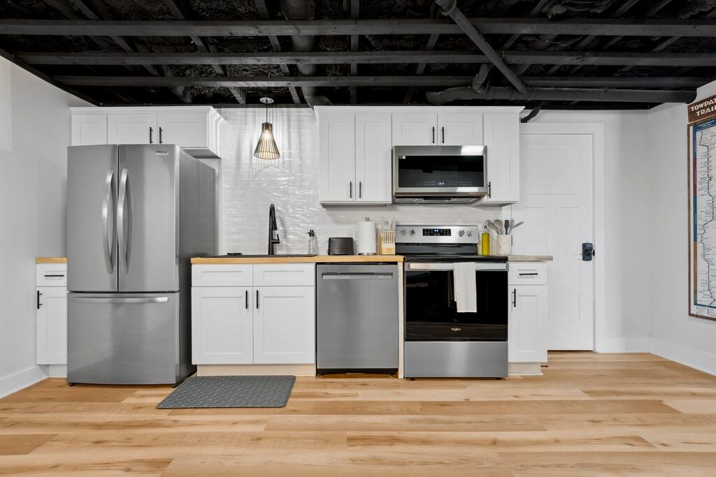 Originally built in the mid 1800s, this home has been lovingly restored to preserve its original character, while incorporating stylish updates throughout. Take in the views of the canal and towpath right from your own private deck or enjoy quality time together in our cozy living room or sitting around the table playing board games. The fully equipped kitchen is perfect for preparing home cooked meals, which you can enjoy at our spacious dining room table or out on the deck seated around the patio set. We are located right in the heart of the picturesque Canal Fulton historic district with many local hotspots just a short walk away, including bars, restaurants, shops, and more. If you're an outdoor enthusiast, you're in for a treat! The Ohio & Erie Canal Towpath Trail is just around the corner, offering miles of beautiful scenery for hiking or biking. You can also enjoy kayaking or canoeing on the scenic Tuscarawas River. Bike, kayak, and canoe rentals are available nearby, giving you the chance to soak in all of the area's natural beauty. Things You'll Love: ✔ Walking distance to local bars, restaurants, coffee shop, and Warehouse on the Canal Event Venue ✔ Nearby access to the Ohio & Erie Canal Towpath Trail for hiking and biking ✔ Access and views of the Erie Canal and Tuscarawas River ✔ High quality, comfortable memory foam mattresses and soft duvet covers ✔ Smart TV's in the living room and both bedrooms ✔ Life sized wall games and a collection of board games ✔ Fully stocked kitchen with pots, pans, utensils, and all the essentials to make your own home cooked meals ✔ Keurig coffee maker and electric tea kettle ✔ Regular and decaf coffee pods, tea bags, and sweeteners ✔ Plush towels and soft linens for added comfort and luxury during your stay ✔ Private deck with outdoor seating area and rocking chairs ✔ Gas grill ✔ Bike racks on site ➺ St. Helena III Canal Boat Rides - 4 minutes ➺ Sluggers & Putters Amusement Park - 6 minutes ➺ Clay's Resort & Jellystone Park - 8 minutes ➺ Portage Lakes State Park North Reservoir Boat Launch - 16 minutes ➺ Akron Canton Airport - 18 minutes ➺ Pro Football Hall of Fame - 23 minutes