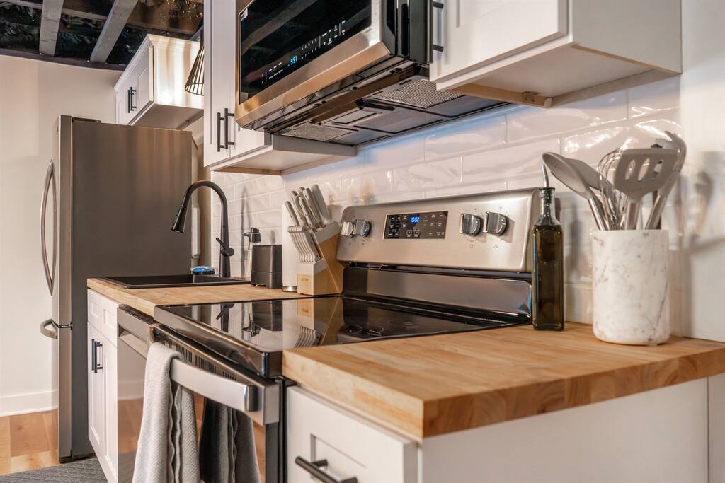 A few stairs are required to enter the unit. This is a historic building with three separate units, one in each floor. Each unit has a separate entrance. Although we have taken painstaking measures to soundproof the building as much as possible, it is still a historic building and some sound may travel between units. We ask that guests in all units please be considerate of each other.