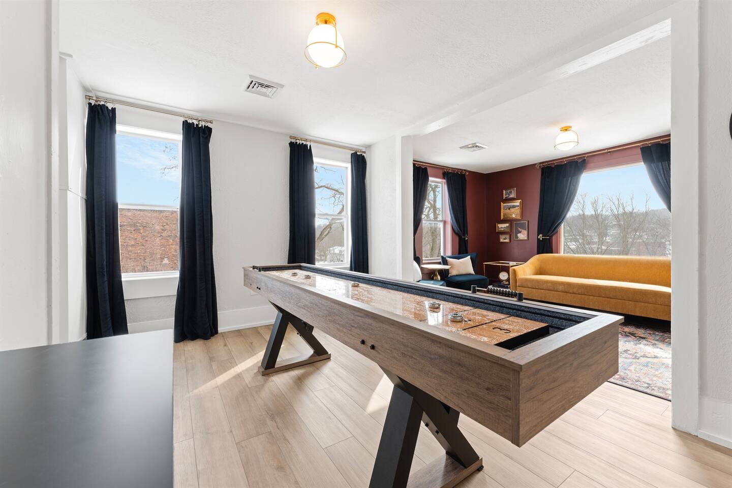 Originally built in the early 1900s, this home has been lovingly restored to preserve its original character, while incorporating stylish updates throughout. Take in the views of the canal and towpath right from the large living room window or enjoy quality time together with a game of shuffleboard or one of our great selection of board games. The fully equipped kitchen is perfect for preparing home cooked meals, and the cozy dining nook is a great spot to enjoy them. The living area and bedroom features high ceilings and thoughtfully designed furnishings, offering a peaceful place to rest after a day of adventure. Step outside to relax on the charming front porch, or take a short walk to any of the local shops, bars, restaurants, and the picturesque Canal Fulton historic district. If you're an outdoor enthusiast, you're in for a treat! The Ohio & Erie Canal Towpath Trail is just around the corner, offering miles of beautiful scenery for hiking or biking. You can also enjoy kayaking or canoeing on the scenic Tuscarawas River. Bike, kayak, and canoe rentals are available nearby, giving you the chance to soak in all of the area's natural beauty. Things You'll Love: ✔ Shuffleboard table & collection of board games ✔ Nearby access to the Ohio & Erie Canal Towpath Trail for hiking and biking ✔ Access and views of the Erie Canal and Tuscarawas River ✔ High quality, comfortable memory foam mattress and soft duvet cover ✔ Smart TV's in the living room and bedroom ✔ Walking distance to local bars, restaurants, coffee shop, and Warehouse on the Canal Event Venue ✔ Fully stocked kitchen with pots, pans, utensils, and all the essentials to make your own home cooked meals ✔ Keurig coffee maker and electric tea kettle ✔ Regular and decaf coffee pods, tea bags, and sweeteners ✔ Plush towels and soft linens for added comfort and luxury during your stay ✔ Outdoor seating area with rocking chairs ✔ Bike racks on site ➺ St. Helena III Canal Boat Rides - 4 minutes ➺ Sluggers & Putters Amusement Park - 6 minutes ➺ Clay's Resort & Jellystone Park - 8 minutes ➺ Portage Lakes State Park North Reservoir Boat Launch - 16 minutes ➺ Akron Canton Airport - 18 minutes ➺ Pro Football Hall of Fame - 23 minutes